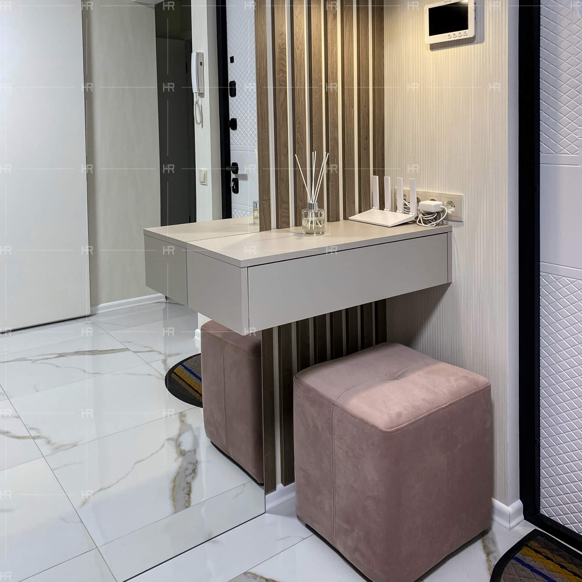 Изделие изготавливается по индивидуальным размерам и может быть реализовано в различных материалах, оттенках и вариантах отделки. Конструкция и визуальный образ формируются на этапе проектирования и согласовываются с заказчиком до начала производства.