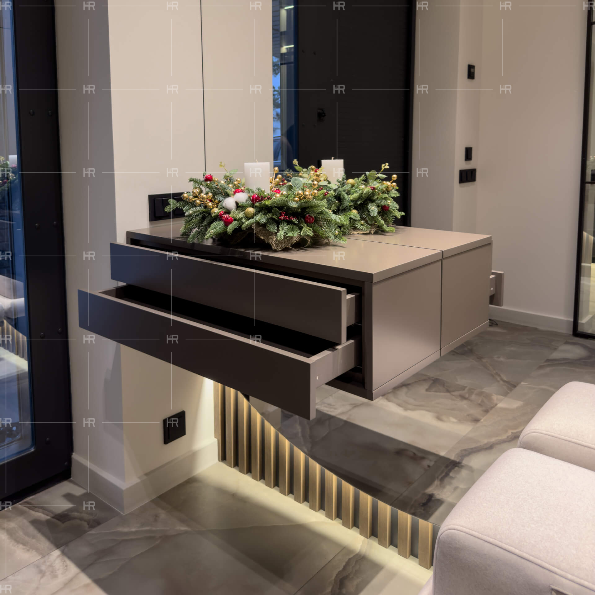 Модель демонстрирует подход HOME REPUBLIC к форме и функциональности мебели. Итоговое решение всегда разрабатывается индивидуально — с учетом пространства, задач и выбранных материалов.