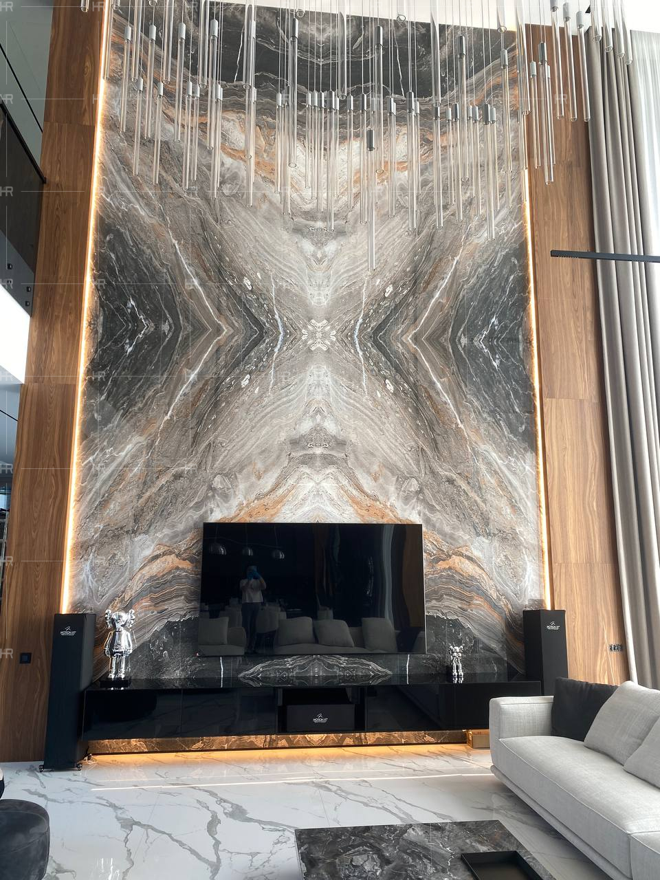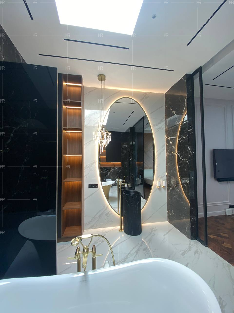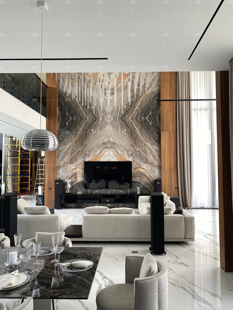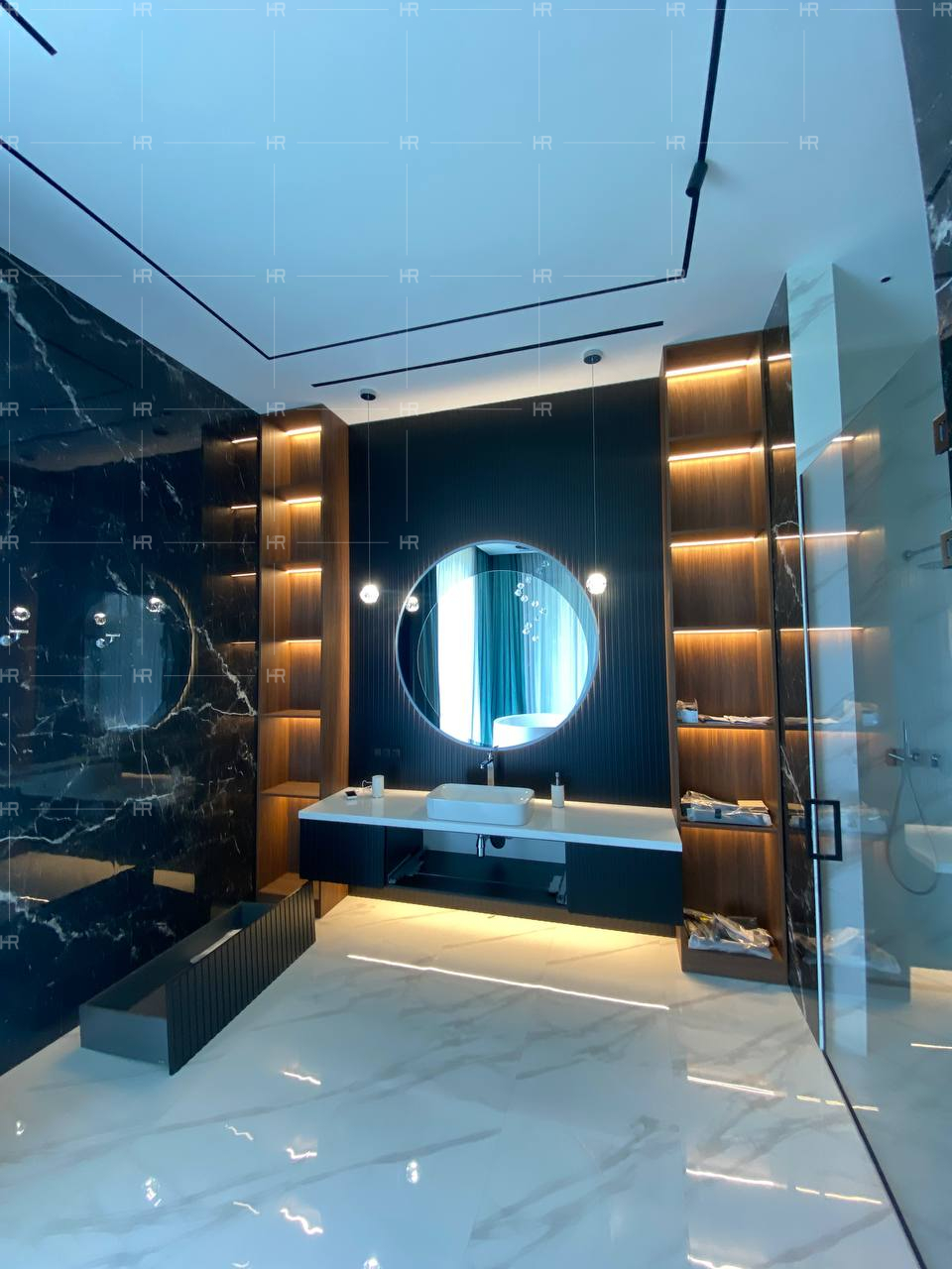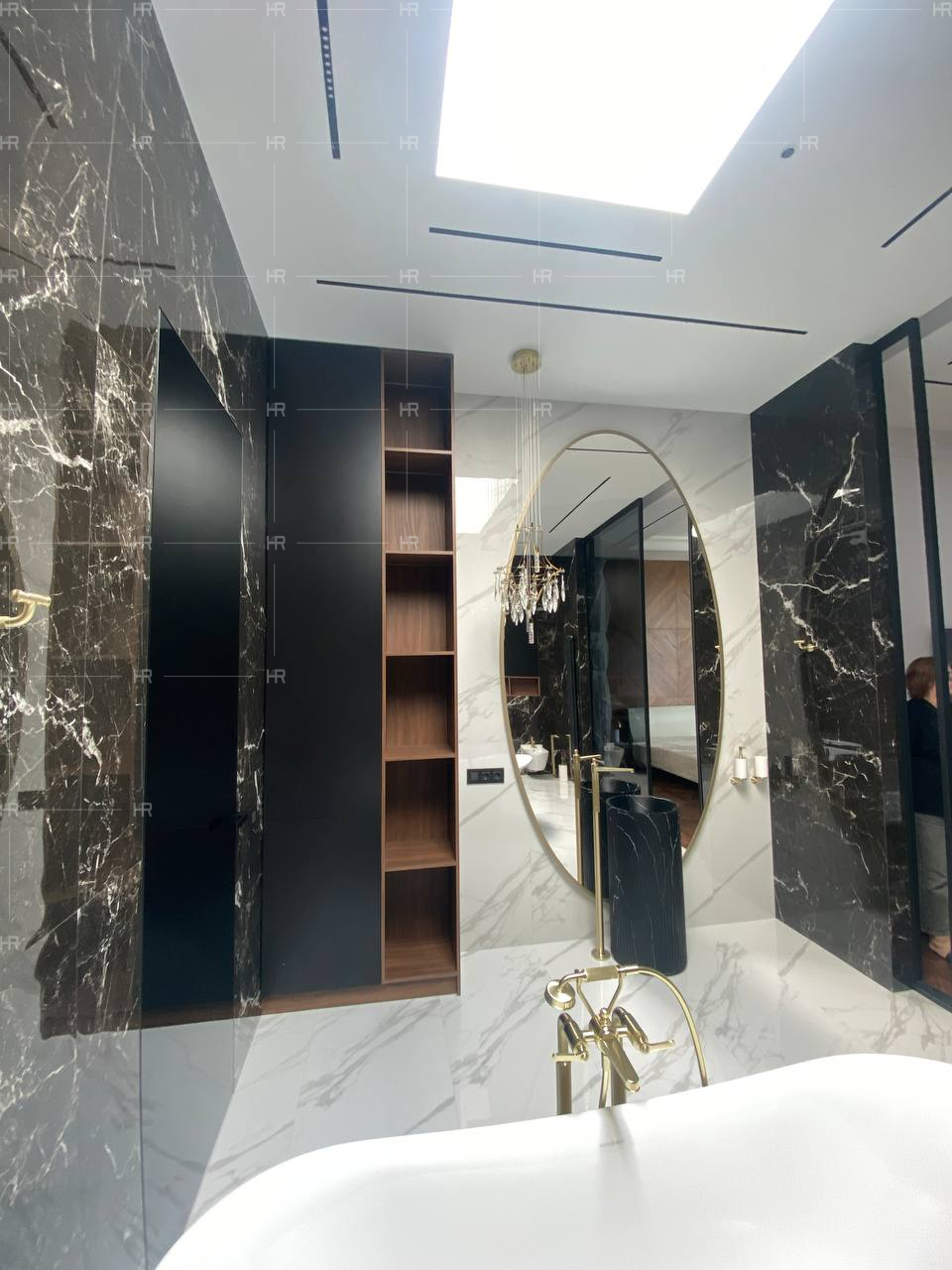 Работы велись в условиях уникальной планировки и очень больших площадей. Естественно, нашим клиентам хотелось, чтобы в обстановке их дома использовались только премиальные материалы — и чтобы эту премиальность было видно.