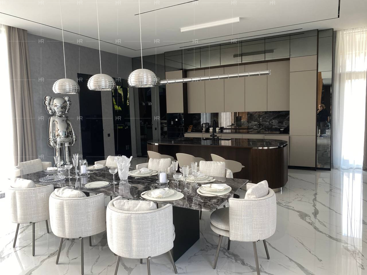 Ещё один грандиозный проект позади! HOME REPUBLIC завершили полную меблировку роскошного частного дома. Требовалось подготовить дизайн, а также собрать мебель для: гостиной, детской, гардеробов (3 штуки), спален (также 3 разных), 3 санузлов, кабинета, кухни, прачечной.