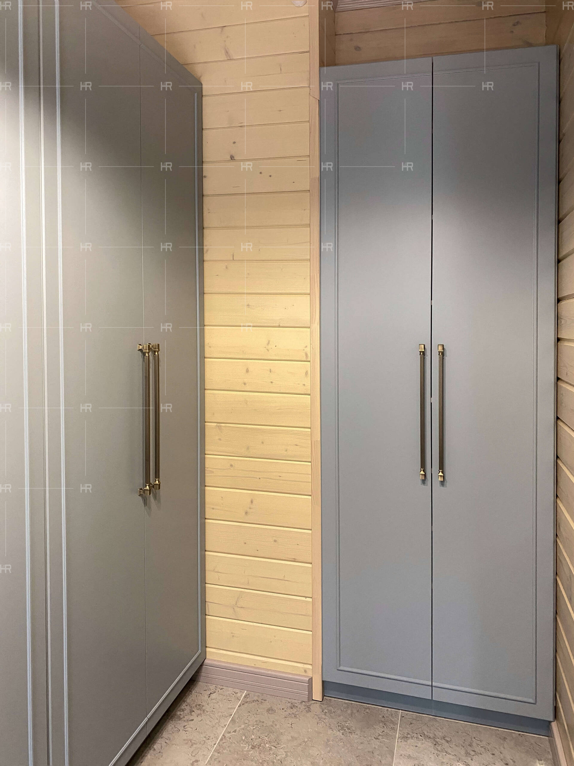 Цоколи (например, шкафов в гардеробных) мы отодвинули назад, чтобы заказчики не бились о них пальцами ног, подходя к ним вплотную. - Асимметричный принцип.