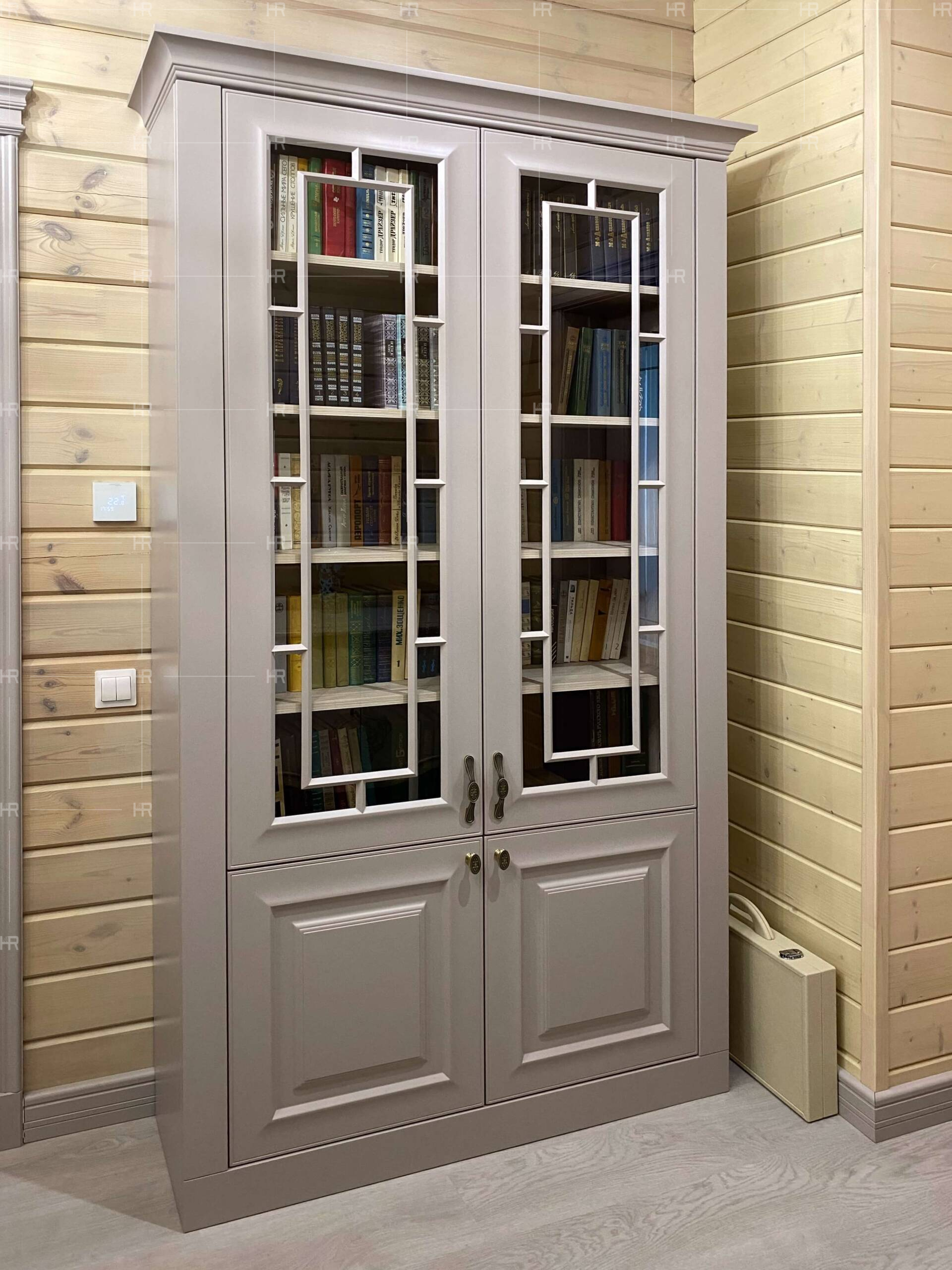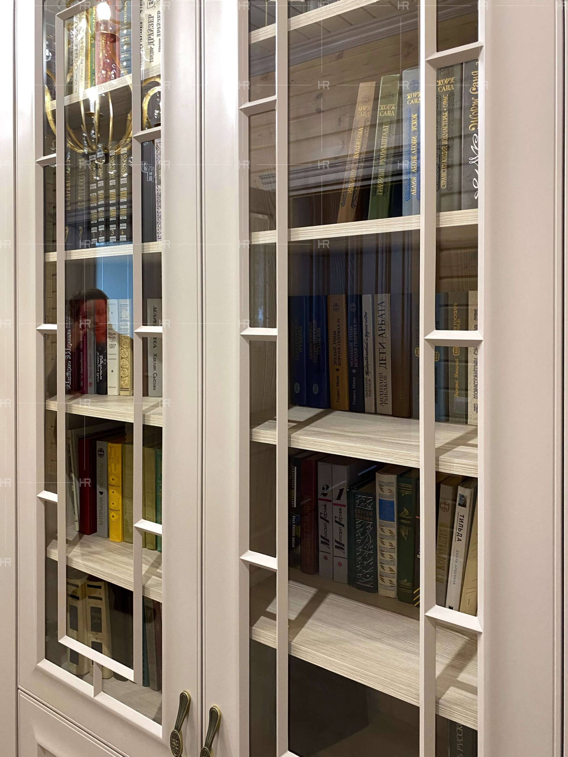 Несмотря на разные области применения, книжный шкаф и шкафы в гардеробных мы выдержали в одном стиле. Да, книги стоят за стеклом, а одежда хранится за зеркалом, но по фрезеровке сразу видно, что все шкафы находятся в едином пространстве. - Широкое применение фасадов.