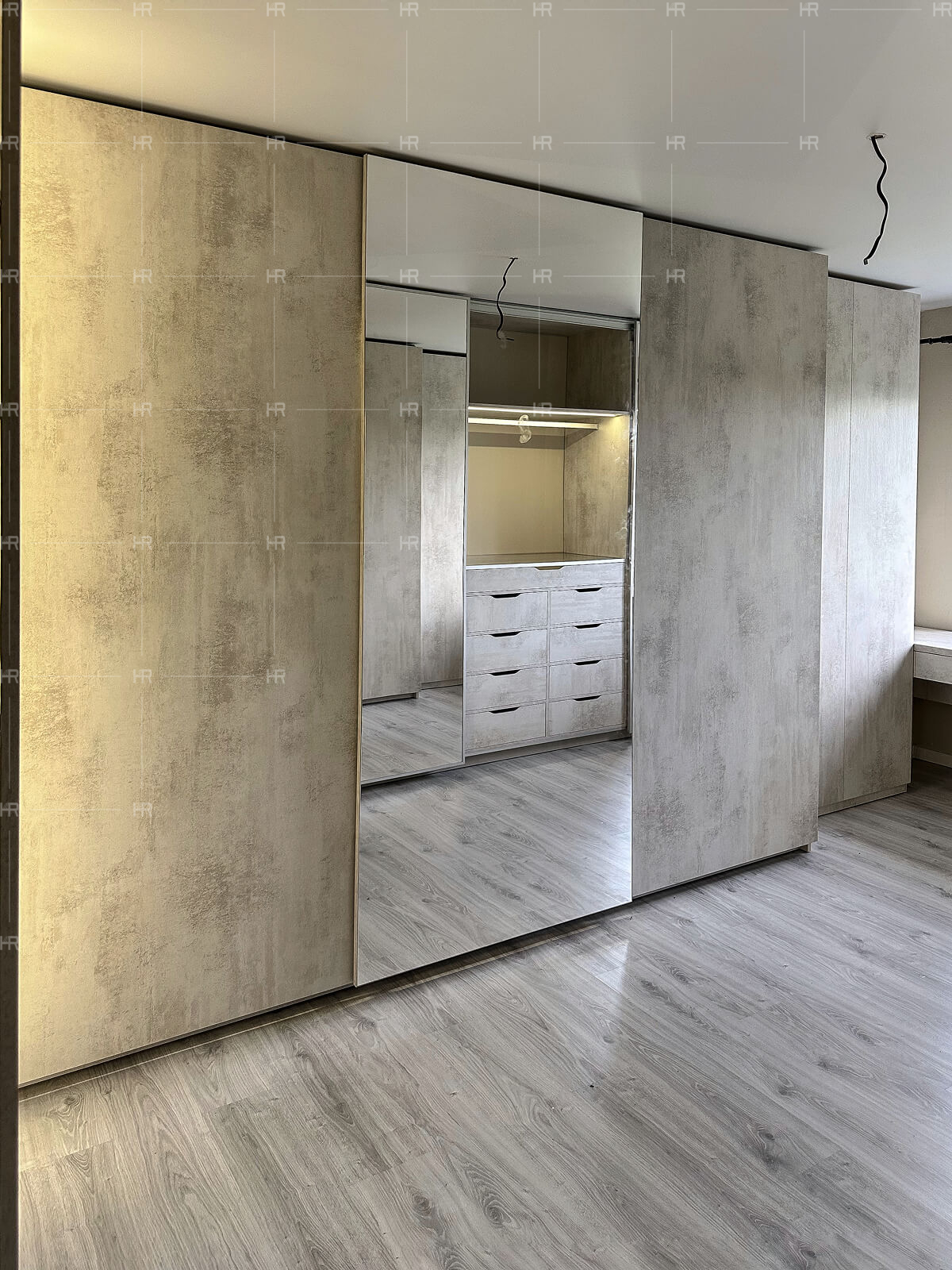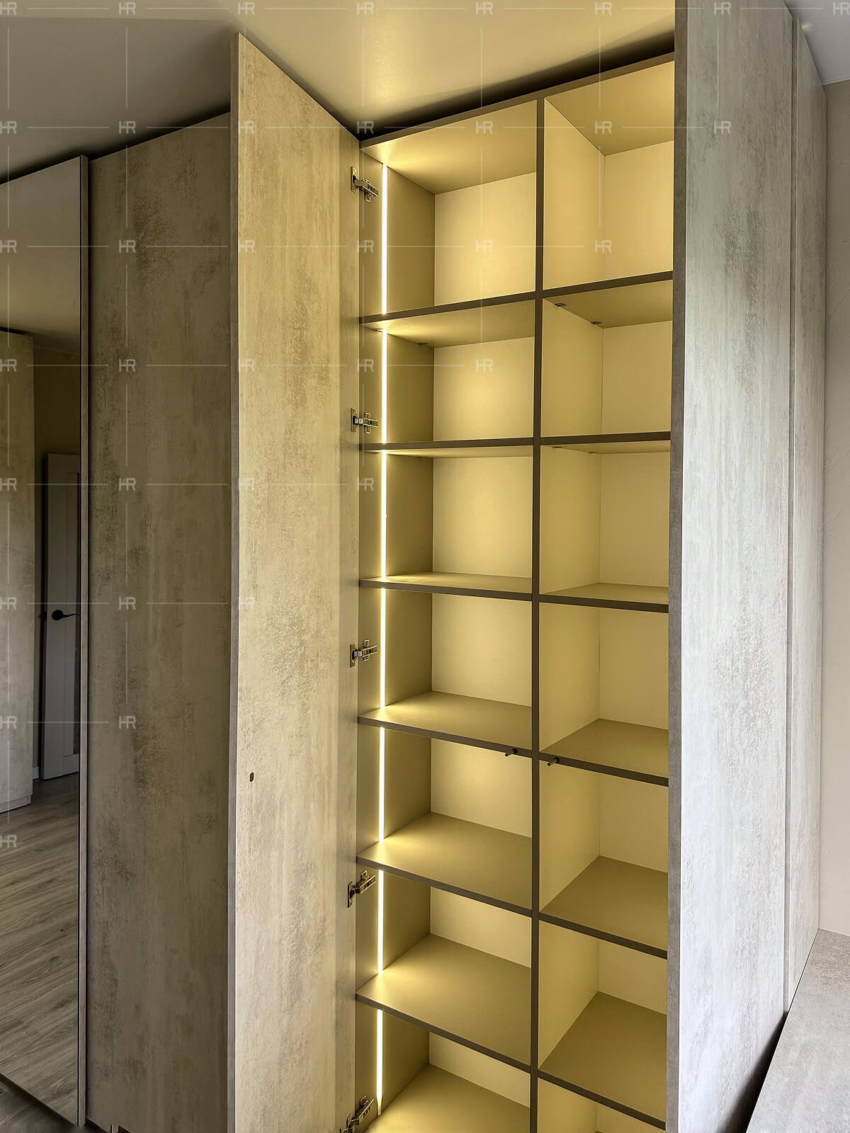 - Врезная встроенная подсветка для каждого шкафа. Чтобы владельцу всегда было удобно находить нужные вещи, во всех шкафах установлена светодиодная подсветка с пультовым управлением.