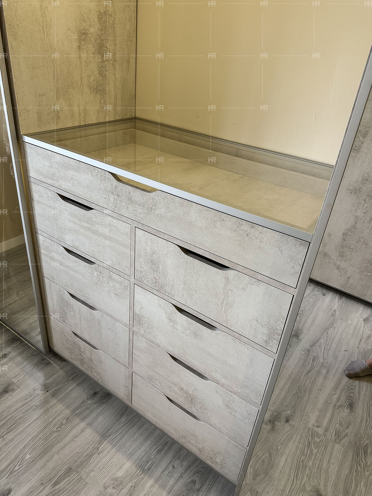 - Плавность работы. Вся фурнитура в гардеробной — с доводчиком, что обеспечивает плавность и лёгкость открытия и закрытия.
