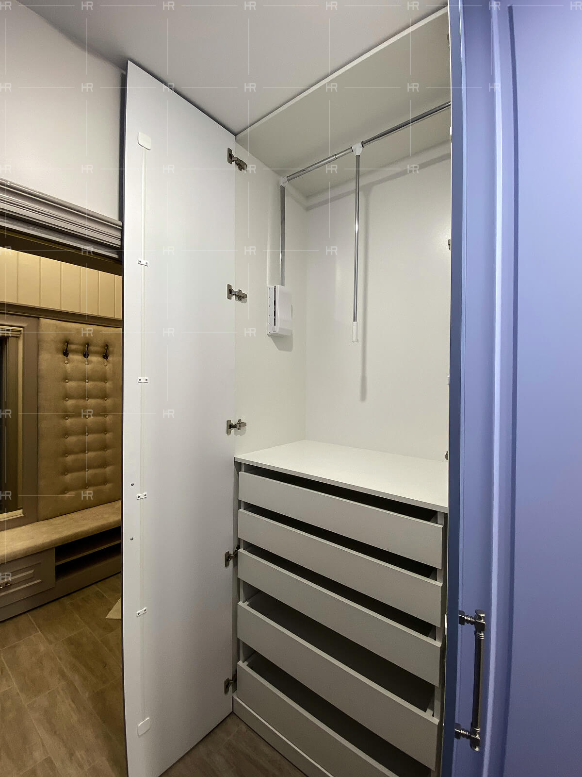 - Тесное взаимодействие с клиентом. Все габариты и конструкцию зоны хранения мы продумывали совместно с заказчиком, чтобы обеспечить ему максимальный комфорт и соответствие его пожеланиям.
